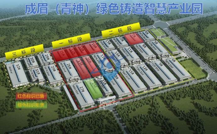 成眉绿色铸造智慧(青神)产业园 50年工业用地产权 一标段交房时间:2022年8月30日 成德眉核心产业区,四川省机械百强县 表面处理(电镀)产业园核心配套园区 青神县重点招商园区 招商方向:铸造全产业链,智能制造,机械加工,金属制品,精密仪器,新材料,表面处理等相关产业 【园区情况】 园区由青神有大工业有限公司,德恩精工等企业投资开发。并且由德恩精工等龙头企业牵头,成立铸造行业创新中心,并最终建设成为城区组成部分的生态化智慧工业园。 园区预计总用地1800亩,计划分五期开发建设,一期规划370亩,建设面积约24万方,容积率1.22。 【园区位置】:眉山市青神县 【厂房价格】:2480元/㎡ 【产权年限】:50年工业产权 【厂房结构】:单层钢结构厂房:层高12.8米,面积:1000㎡—10000㎡(带办公辅助用房) 【交通配套】:成绵乐城际高铁(青神站)12分钟可达乐山,30分钟可达双流机场,38分钟可达成都 眉青快速通道:链接眉山、成都、乐山等城市 岷东大道:链接剑南大道直达眉山、成都 【生活配套】:配套员工宿舍,园区超市,享受青神县城区生活医疗休闲配套。 【园区服务】:可享受电镀产业园配套加工,园区实行统一建设、统一管理、自主运营。分为商务办公区,生产制造区,生活服务区三大功能区。